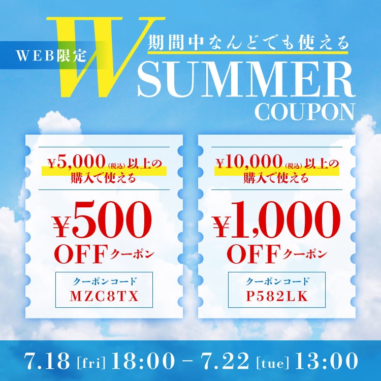 週末のお買物は、開催中のSUMMER SALEと併せて、お得にお買物を楽しみましょう!