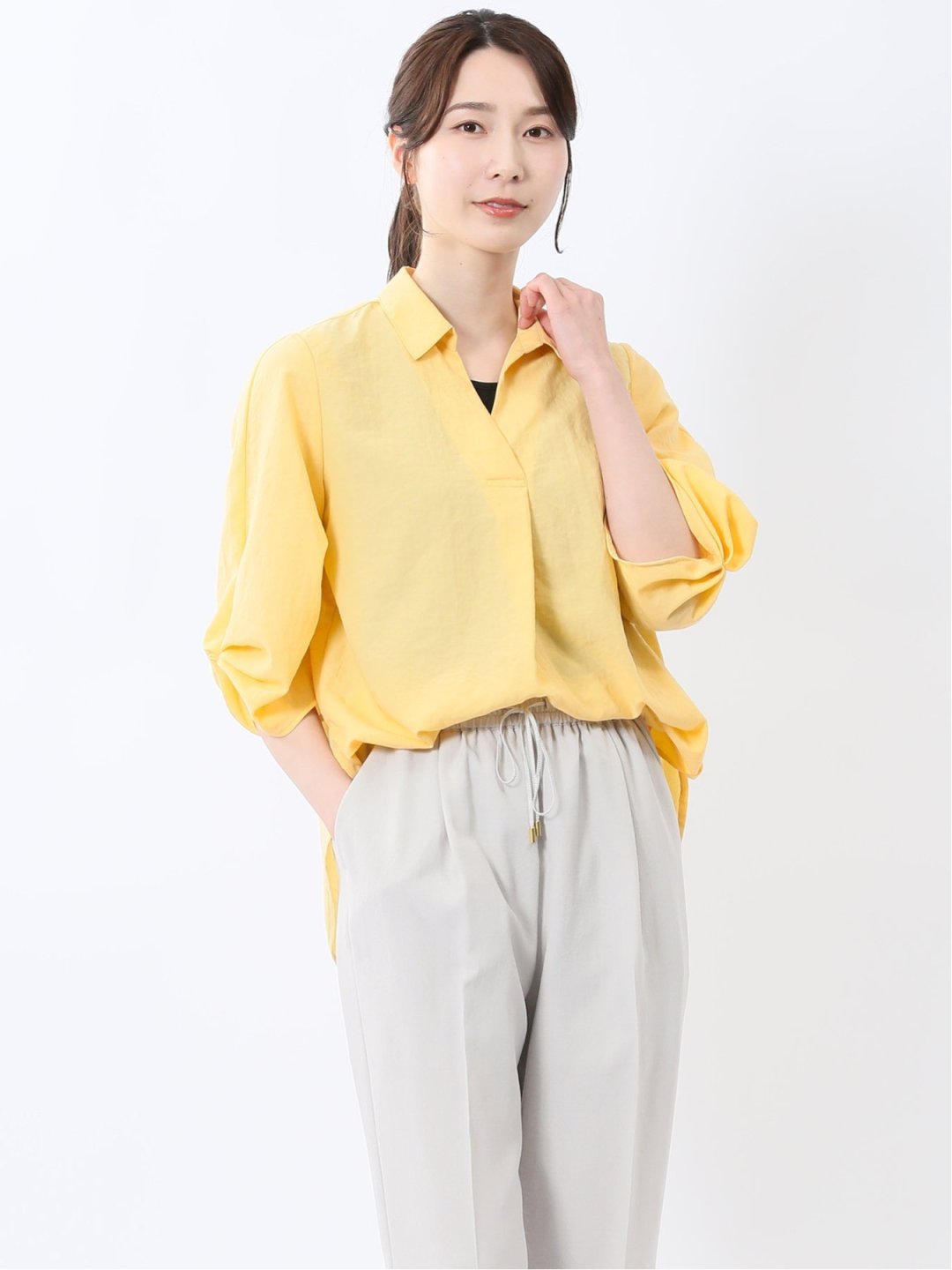 「静謐(せいひつ)な美しさが宿る、洗練された佇まい。余計なものを削ぎ落とし、細部まで計算されたシルエットが、気品と清潔感を纏わせる。控えめでありながら、凛とした存在感を放つ装い。