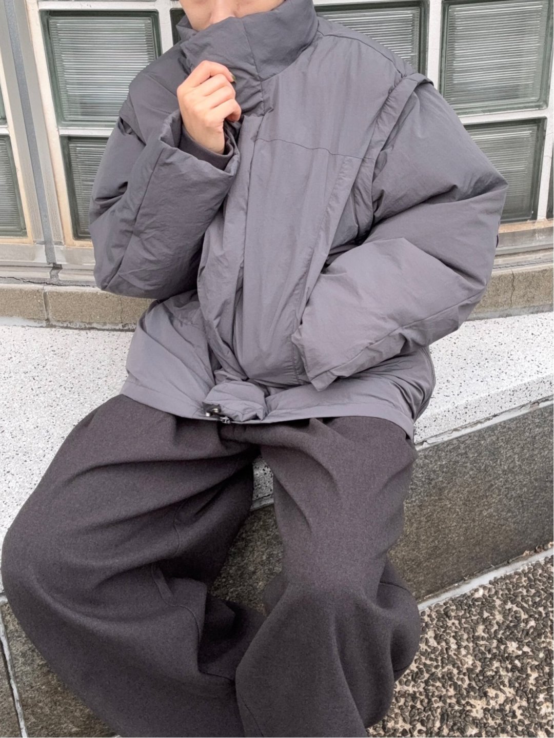 2WAY仕様 中綿ブルゾン グレー