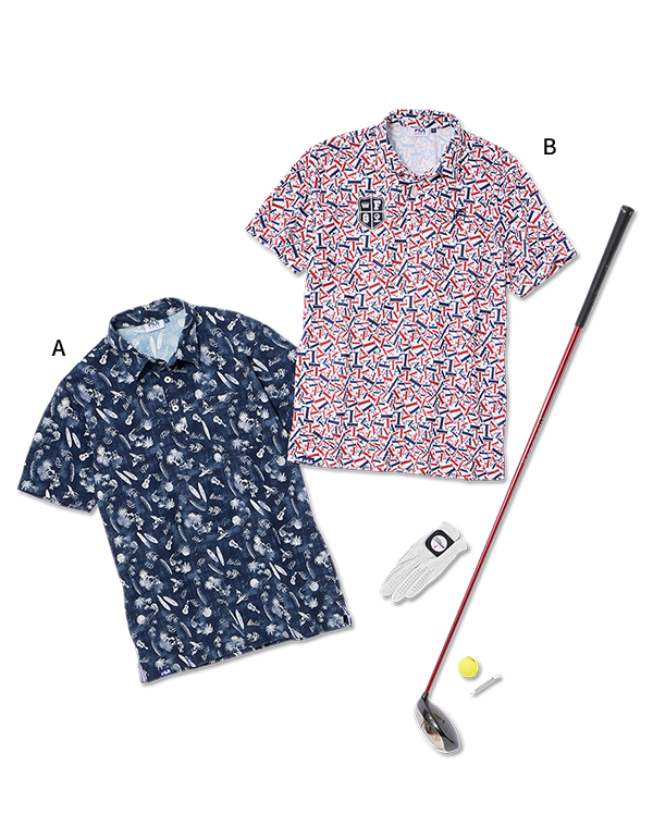 A.[FILA GOLF] メッシュ総柄半袖シャツ¥13,750 inc. tax