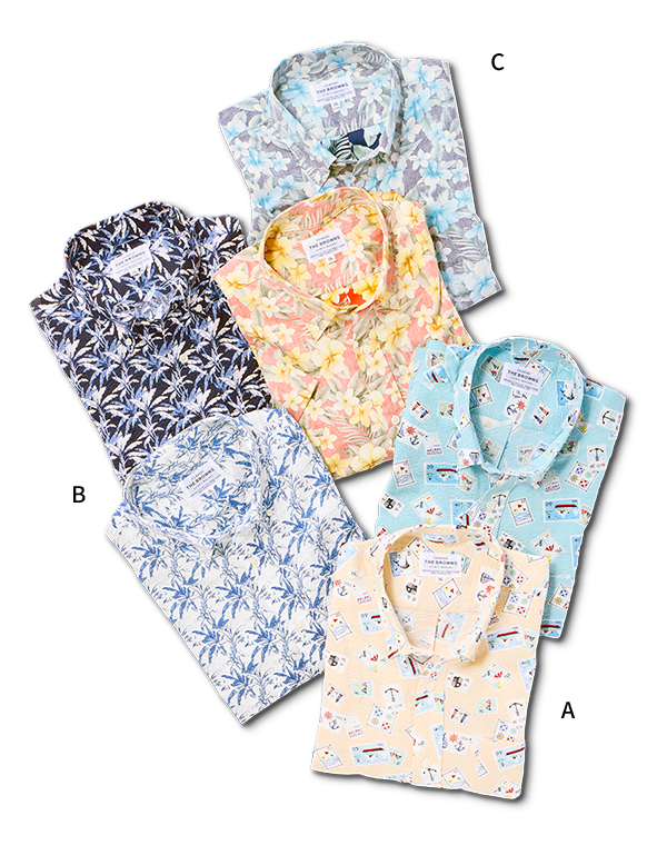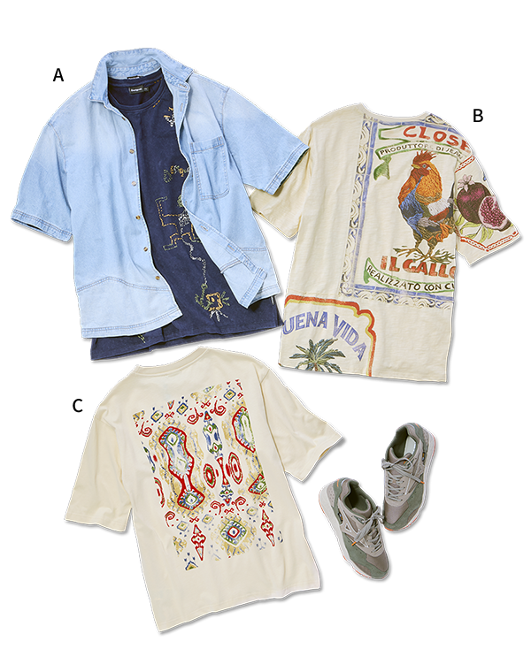 B.ヤシ柄半袖シャツ ¥11,000 inc. tax