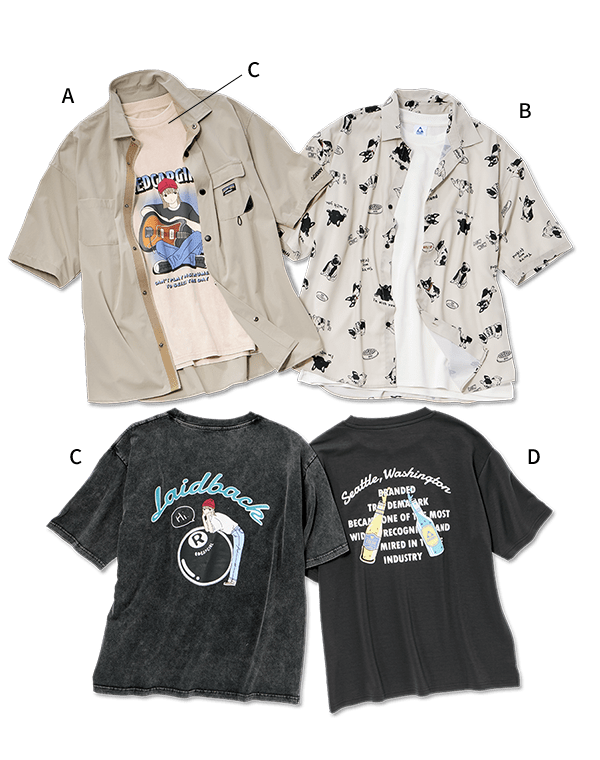 B.冷感とろみドッグ柄半袖シャツ ¥6,600 inc. tax