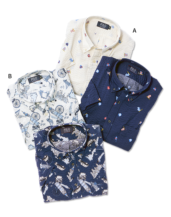 A.[POLO]小紋プリント半袖シャツ ¥7,700 inc. tax