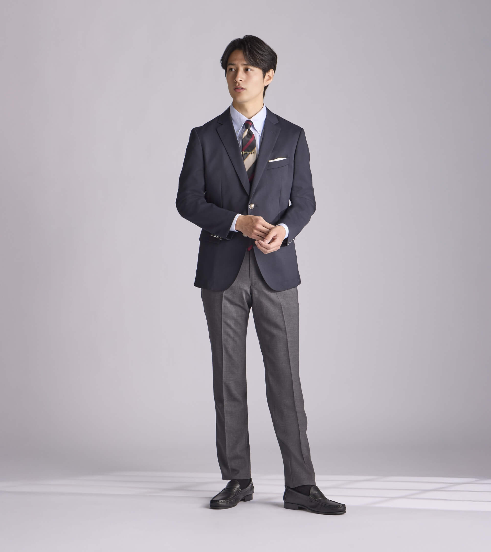長く頼れる定番スーツです。