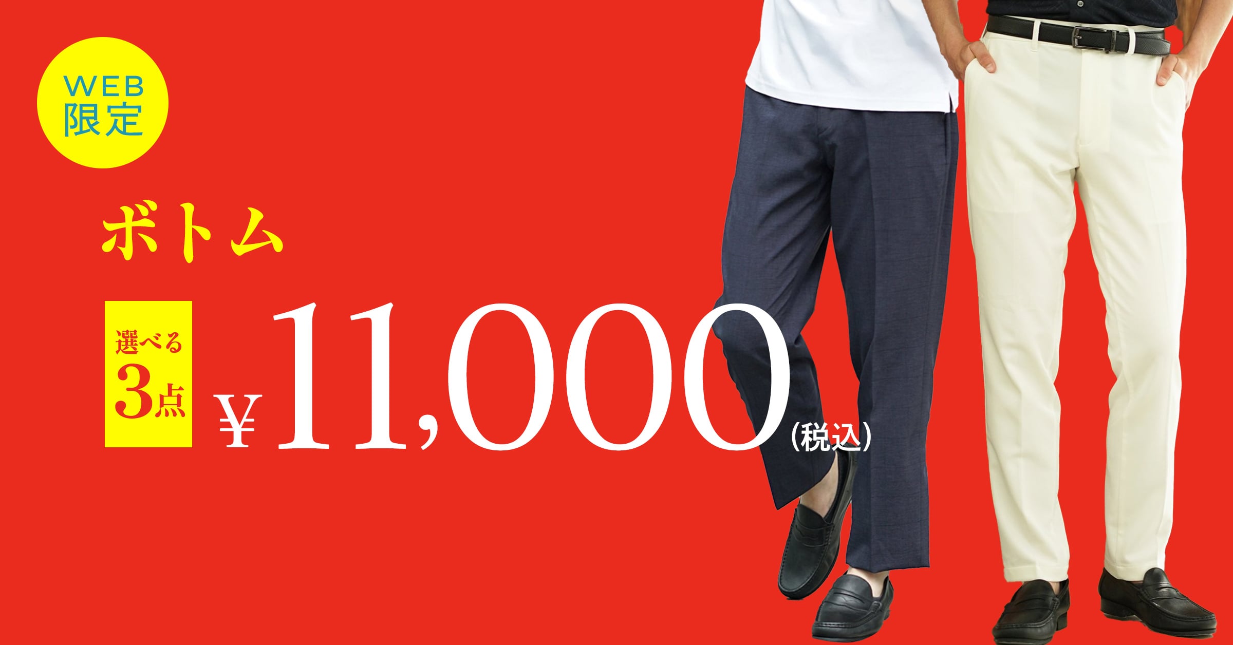 対象のカジュアルパンツが3点で¥11,000(税込) に!