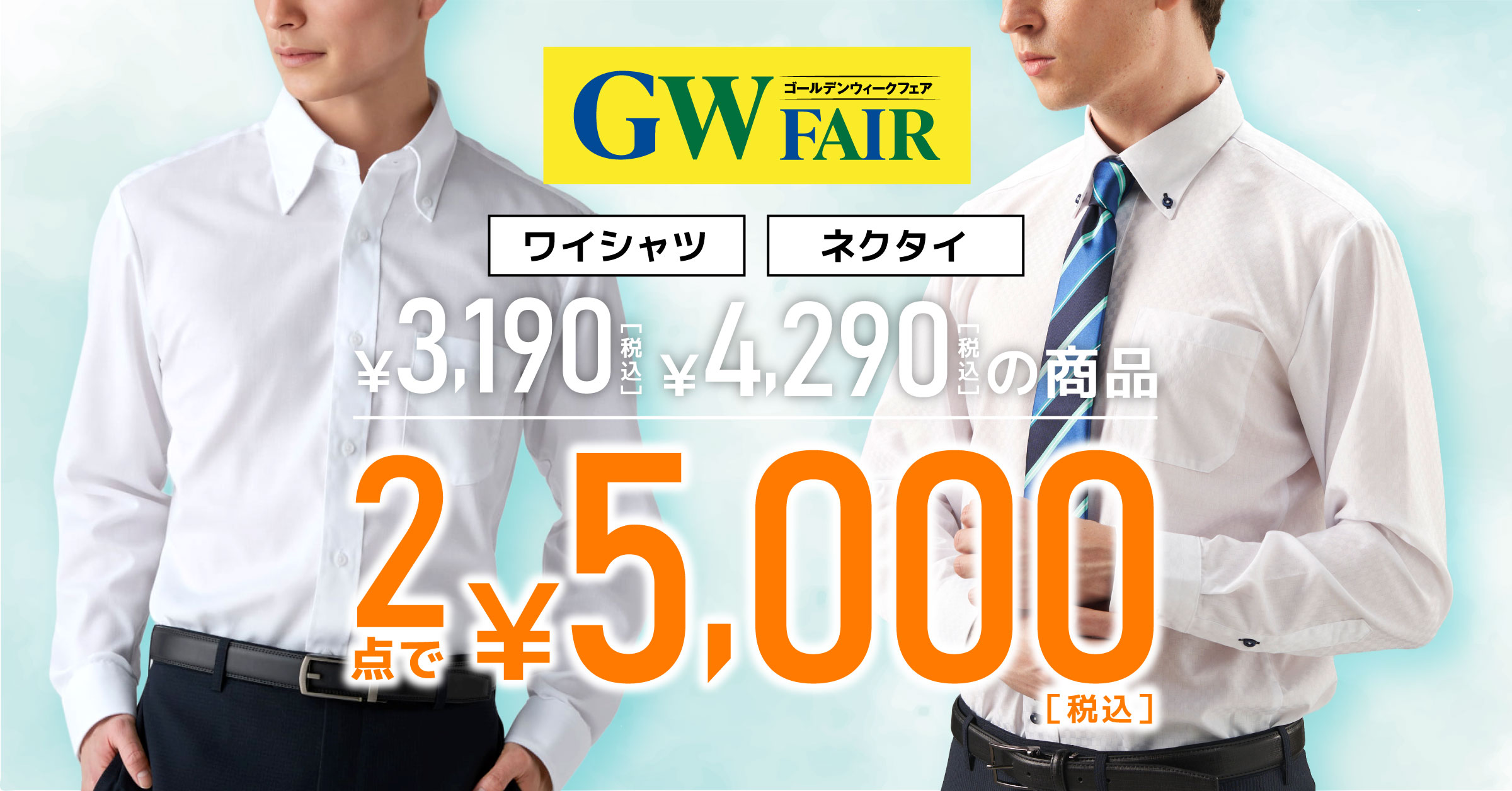 対象のワイシャツが選べる2点で¥5,000(税込) に!