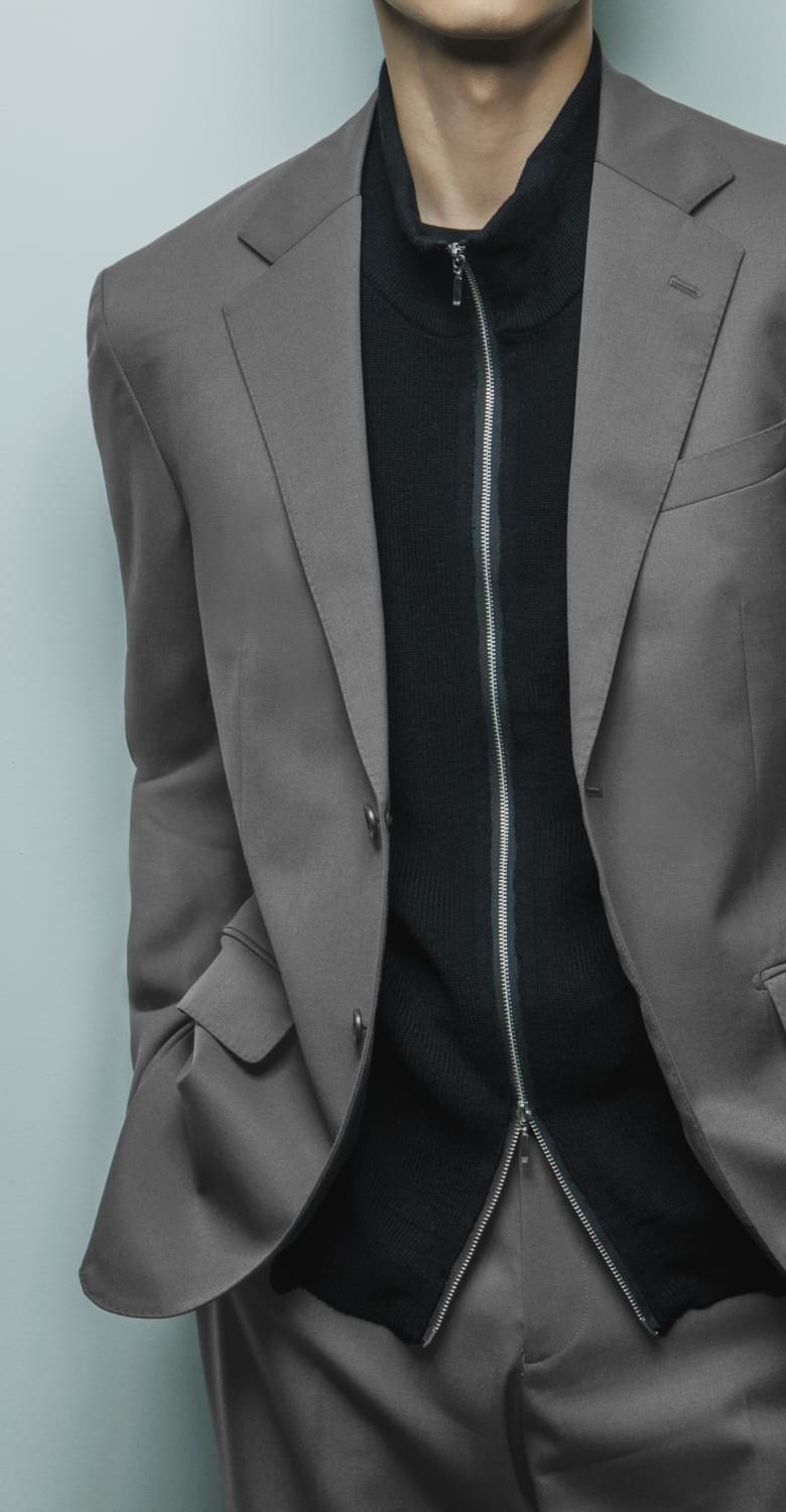スーツの構築性と、セットアップの軽快さを