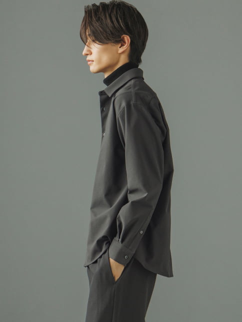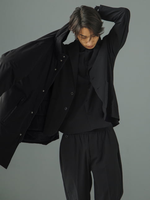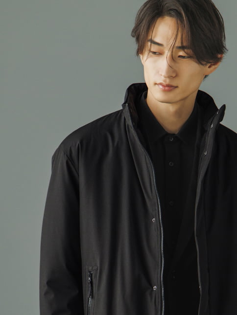 重ねて、ワントーンでも深みのある着こなしを楽しめます。